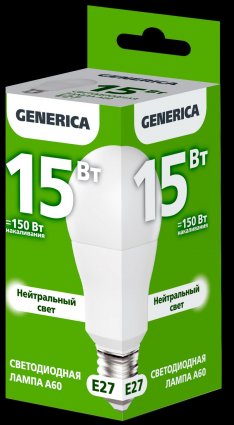 Generica LL-A60-15-230-40-E27-G Лампа LED A60 груша 15Вт 230В 4000К E27