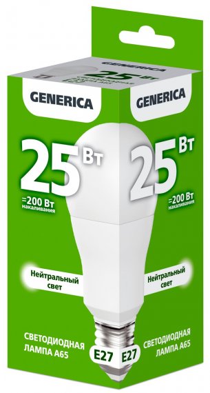 Generica LL-A65-25-230-40-E27-G Лампа LED A65 груша 25Вт 230В 4000К E27