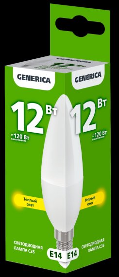 Лампа LED C35 свеча 12Вт 230В 3000К E14 GENERICA