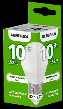 Generica LL-G45-10-230-40-E27-G Лампа LED G45 шар 10Вт 230В 4000К E27