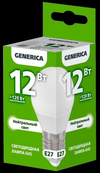Generica LL-G45-12-230-40-E27-G Лампа LED G45 шар 12Вт 230В 4000К E27