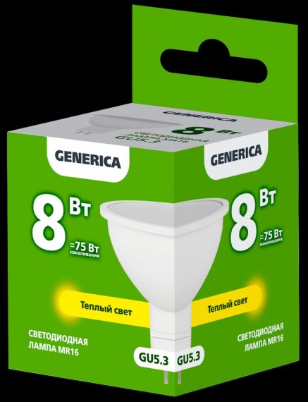 Generica LL-MR16-08-230-30-GU5-G Лампа LED MR16 софит 8Вт 230В 3000К GU5.3