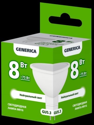Generica LL-MR16-08-230-40-GU5-G Лампа LED MR16 софит 8Вт 230В 4000К GU5.3