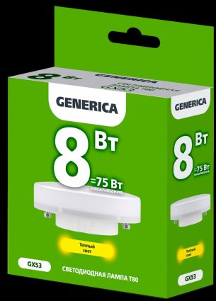 Generica LL-T80-08-230-30-GX53-G Лампа LED T80 таблетка 8Вт 230В 3000К GX53
