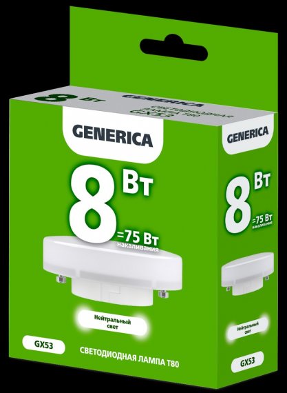 Generica LL-T80-08-230-40-GX53-G Лампа LED T80 таблетка 8Вт 230В 4000К GX53