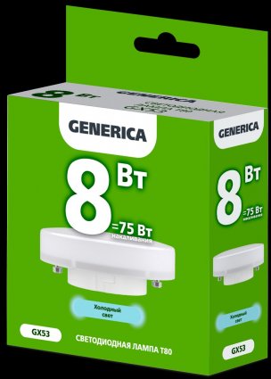 Generica LL-T80-08-230-65-GX53-G Лампа LED T80 таблетка 8Вт 230В 6500К GX53