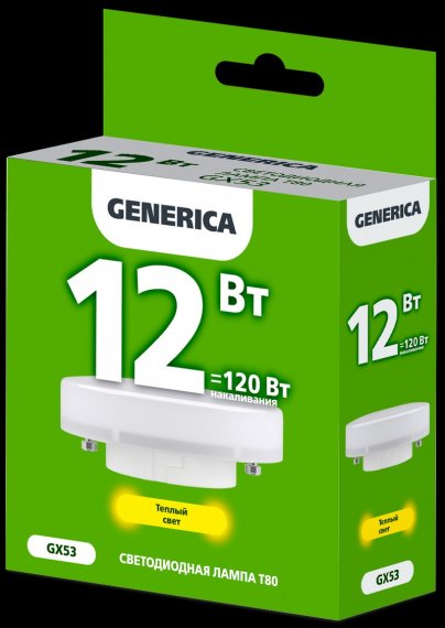 Generica LL-T80-12-230-30-GX53-G Лампа LED T80 таблетка 12Вт 230В 3000К GX53