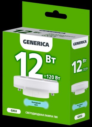 Generica LL-T80-12-230-65-GX53-G Лампа LED T80 таблетка 12Вт 230В 6500К GX53