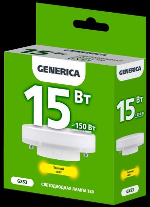 Generica LL-T80-15-230-30-GX53-G Лампа LED T80 таблетка 15Вт 230В 3000К GX53