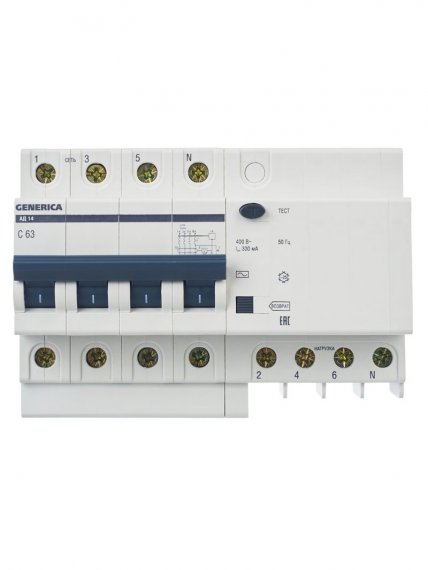 Диф. автомат АД14 4Р 63А 300мА GENERICA