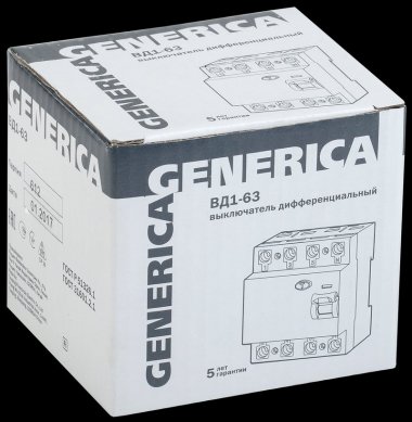 Быстродействующий защитный выключатель ВД1-63 (УЗО) GENERICA - устройство электронного типа, зависящее от напряжения и реагирующее на дифференциальный ток, без встроенной защиты от сверхтоков. Предназначен для защиты человека от поражения электрическим током.