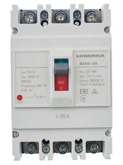 Выкл. авт. ВА66-35 3Р 250А 25кА GENERICA