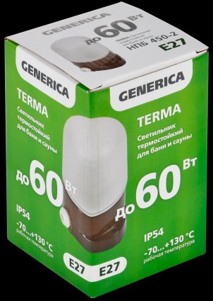 Светильник НПБ серии 450 торговой марки GENERICA предназначен для применения в бытовых помещениях с высоким содержанием пыли и влаги, а так же с предельной температурой окружающей среды до 140 °С, например в банях и саунах. Светильник имеет полностью керамический корпус и стеклянный плафон, что обеспечивает высокую термическую надёжность, а так же приятный внешний вид. Для уплотнения соединения между корпусом и рассеивателем используется силиконовая прокладка способная выдержать длительную эксплуатацию при высоких температурах, при этом не происходит деформация и высыхание на всем гарантийном периоде эксплуатации. Некоторые модели светильников могут быть использованы для сквозной проводки, так как имеют 2 гермоввода. Светильники имеют три вида цветового исполнения: классический белый, насыщенный шоколадный (коричневый) и узорный мраморный! Так же мы предлагаем 3 вида корпуса: классический прямой, наклонный под 45° и угловой.