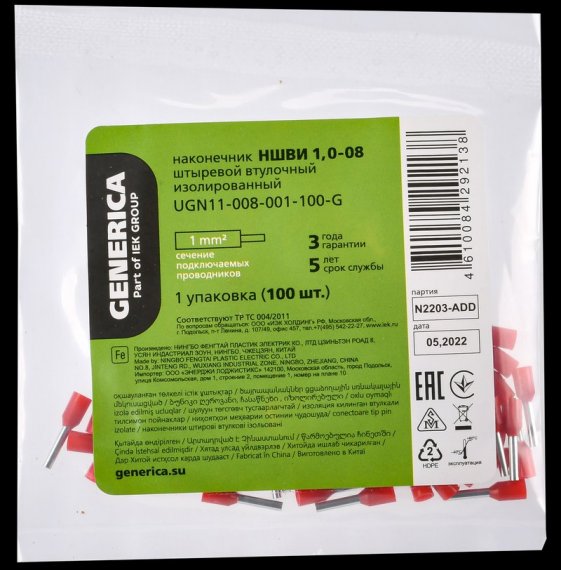 Наконечник НШВИ 1,0-08 1мм2 из/фл (100шт/упак) GENERICA