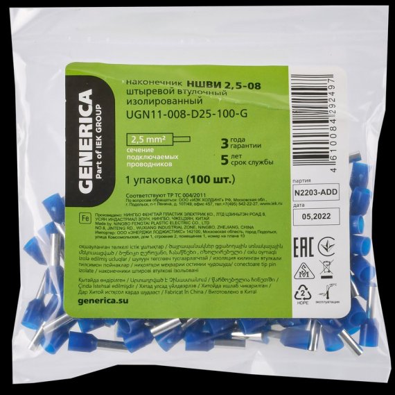 Generica UGN11-008-D25-100-G Наконечник НШВИ 2,5-08 2,5мм2 из/фл