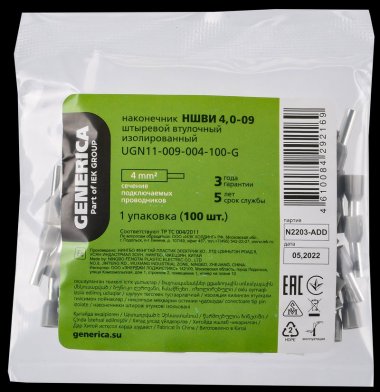 Generica UGN11-009-004-100-G Наконечник НШВИ 4,0-09 4мм2 из/фл