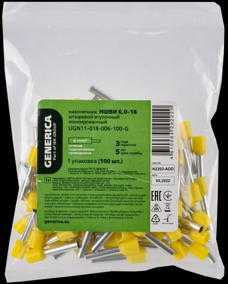 Generica UGN11-018-006-100-G Наконечник НШВИ 6,0-18 6мм2 из/фл