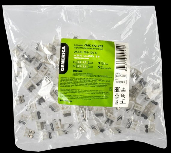 Клеммы строительно-монтажные типа СМК товарного знака GENERICA предназначены для соединения одножильных и многожильных проводников без использования инструмента в электрических сетях переменного и постоянного тока. Клеммы СМК 772 предназначены для подключения медных и алюминиевых проводников, являются одноразовыми.