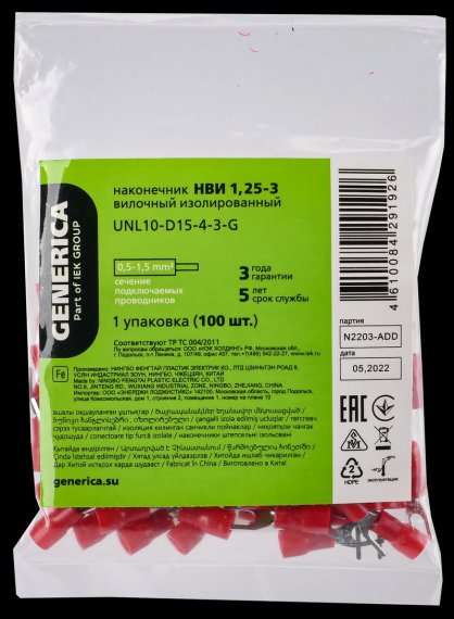 Generica UNL10-D15-4-3-G Наконечник НВИ 1,25-3 вилка 0,5-1,5мм