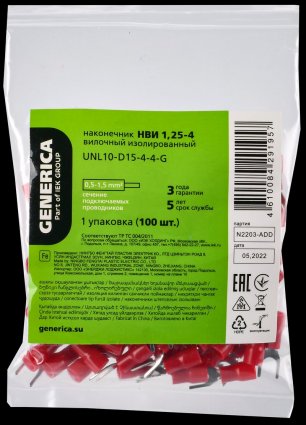Generica UNL10-D15-4-4-G Наконечник НВИ 1,25-4 вилка 0,5-1,5мм