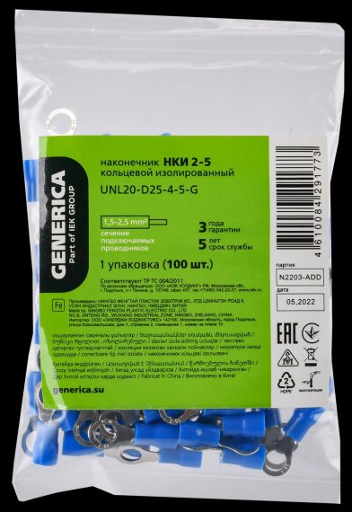 Generica UNL20-D25-4-5-G Наконечник НКИ 2-5 кольцо 1,5-2,5мм