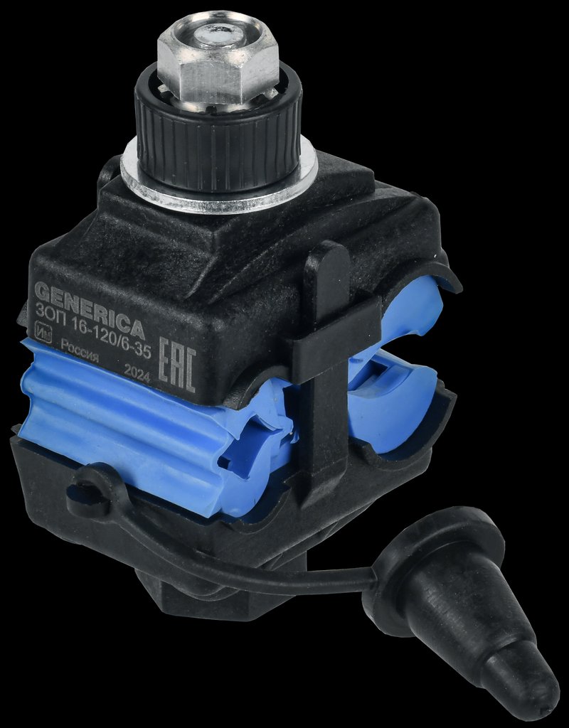 Зажимы ЗОП ТМ GENERICA предназначены для подключения провода СИП к магистральной неизолированной линии. Применимы для алюминиевых и медных проводников напряжением до 1 кВ., а также для ответвления абонентских проводников (проводов освещения). При затягивании болтов ножи контактной пластины образуют надежный электрический контакт, прокалывая изоляцию проводника ответвления. При достижении определенного усилия, достаточного для создания надежного электрического контакта, происходит срыв головки затягиваемого болта. Корпус зажима выполнен из стеклоармированного полиамида и устойчив к УФ излучению.