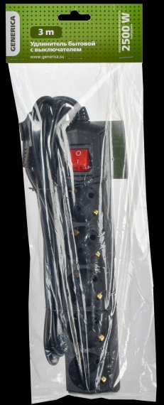 Удлинитель У05В 5 мест с/з 3м 3х1мм2 10А 250В чер. GENERICA
